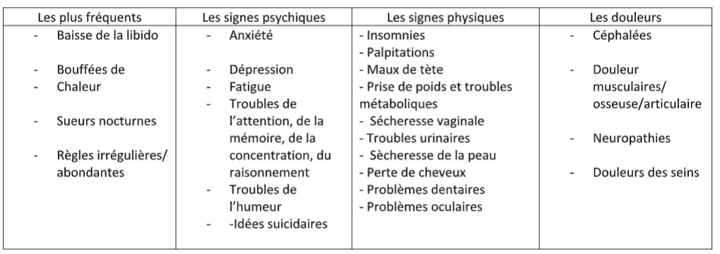 Les symptômes de la ménopause sont vastes :
